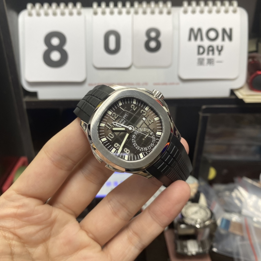 • Patek Philippe Aquanaut Travel Time series 5164A-001, GMT Dual Time Function, 40.8mm Size.