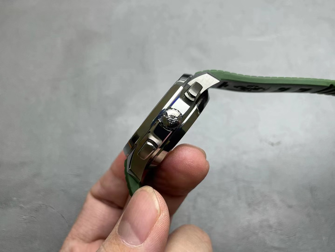 • Patek Philippe Aquanaut Series 5968G-010, Khaki Green Dial, 42.2mm size.