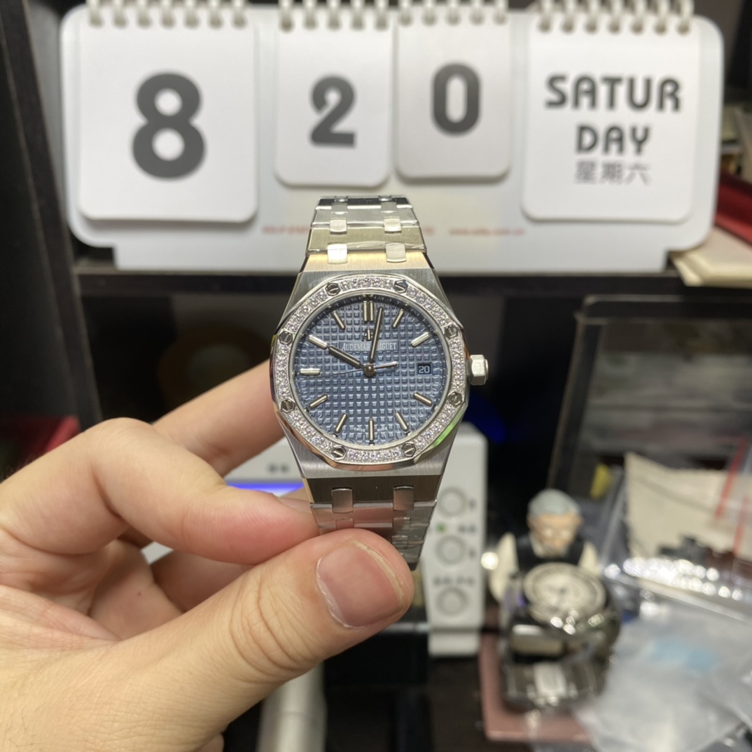 • Audemars Piguet Royal Oak Offshore Series 77451ST.ZZ.1361ST.04, Blue Dial Gem-Set Bezel Mechanical Movement, 34mm Size.