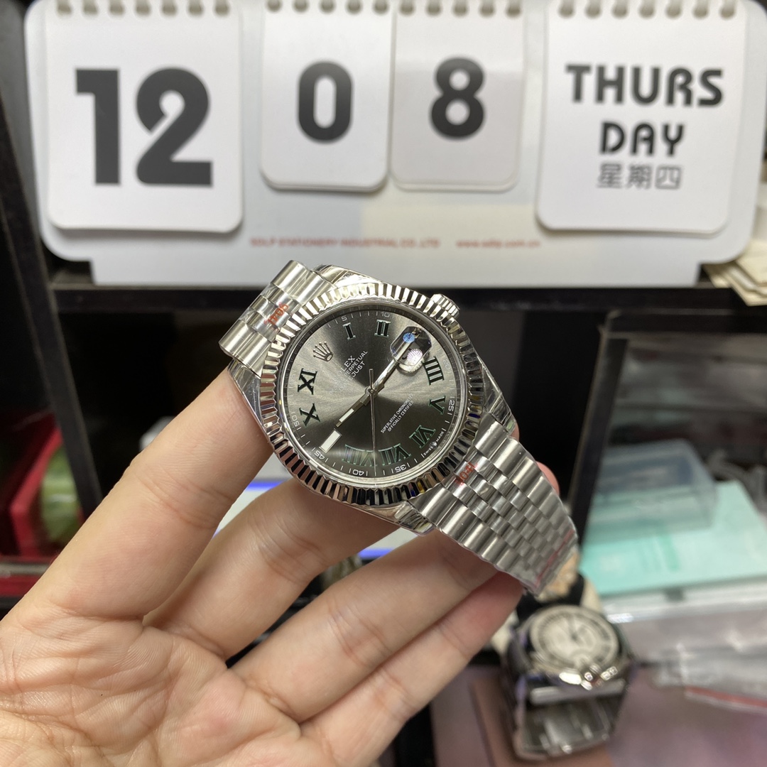 Rolex Datejust Series m126334-0022, Grey Dial with Green Roman Numerals Five-Link Stainless Steel Bracele, 41mm Size.