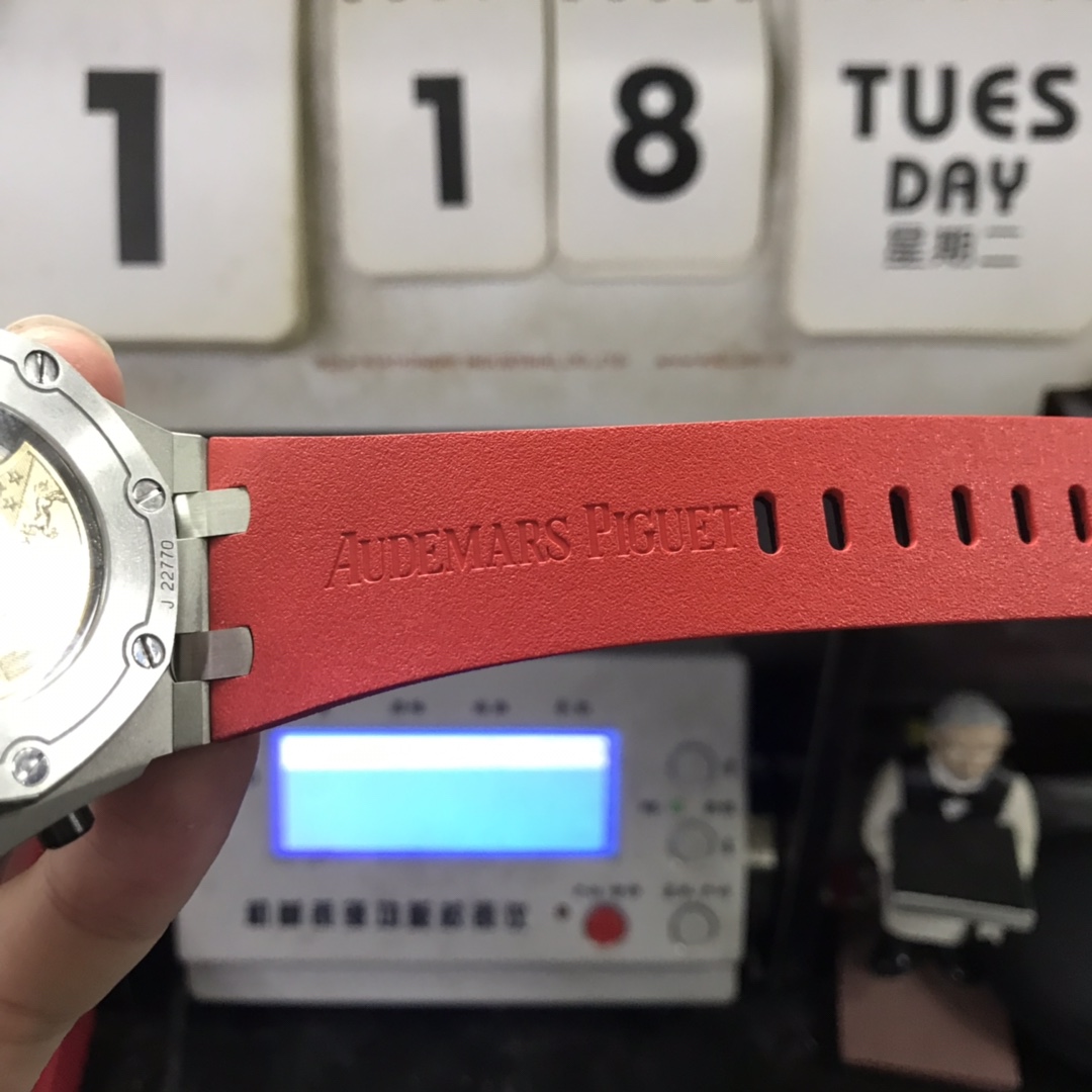 ·Dial Material: Black dial with "Méga Tapisserie" large grid decoration, black sub-dials, platinum luminescent Royal Oak hands, black inner bezel