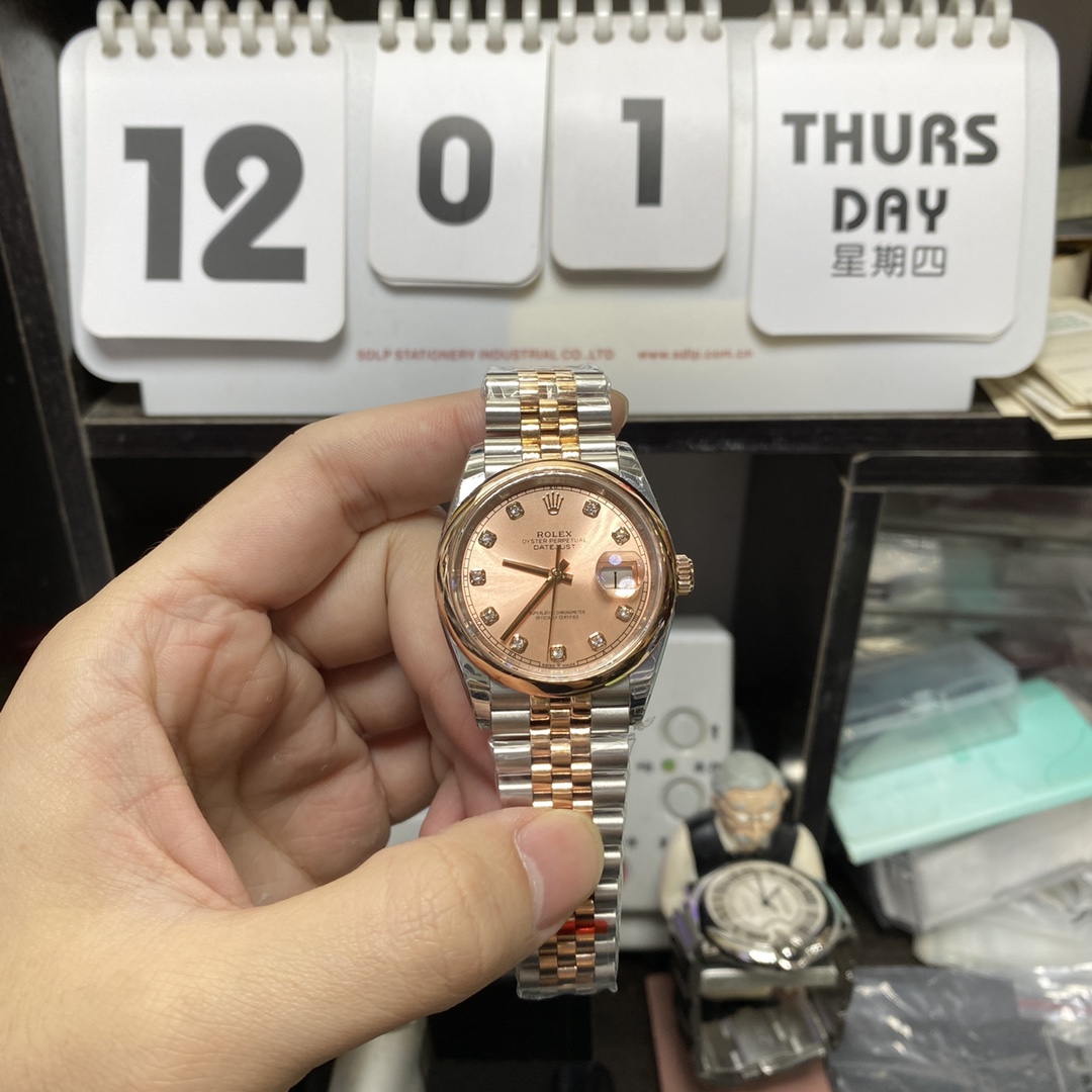 Rolex Datejust Series Pink Dial with 18k rose gold case 36mm Size, Five-Link Steel Bracelet.