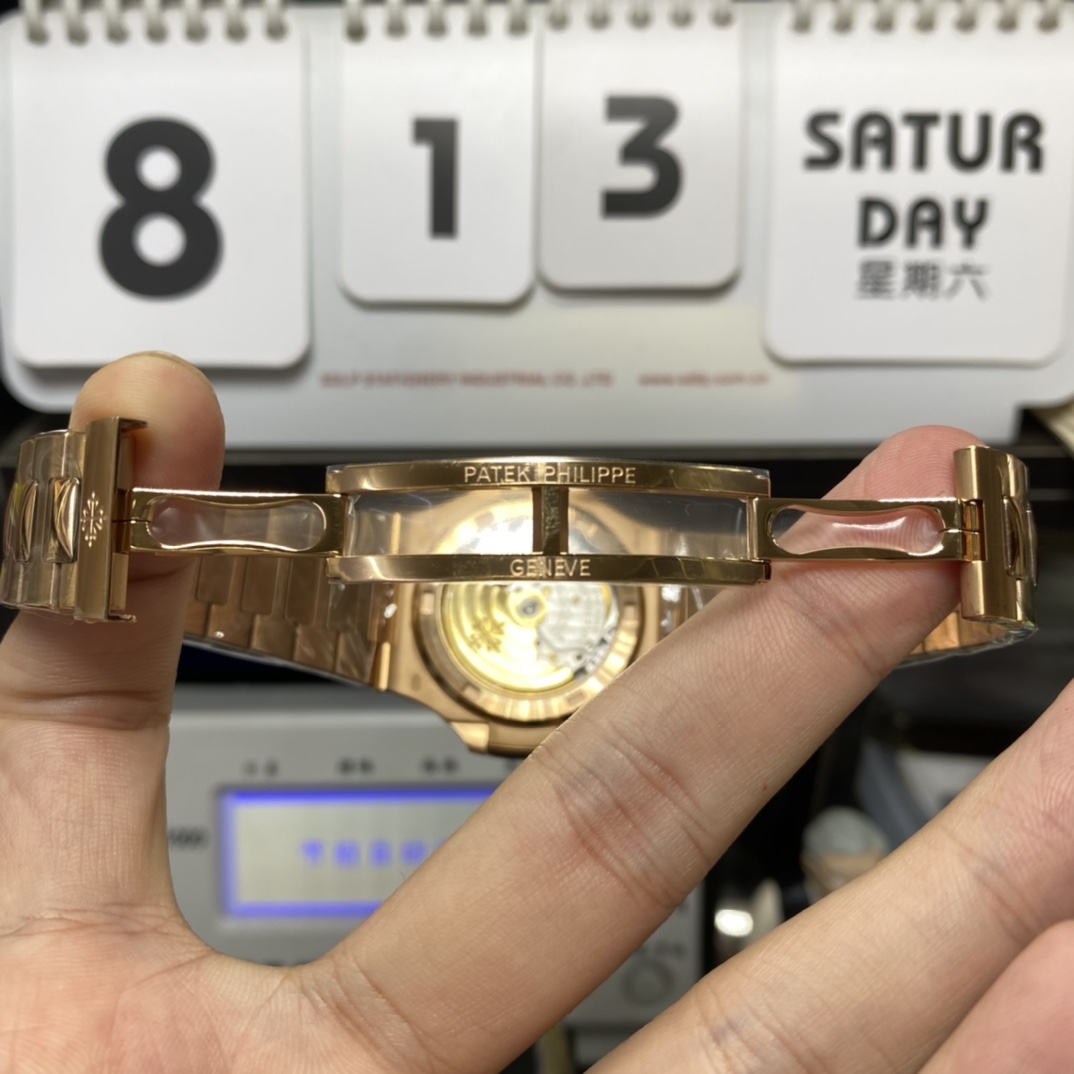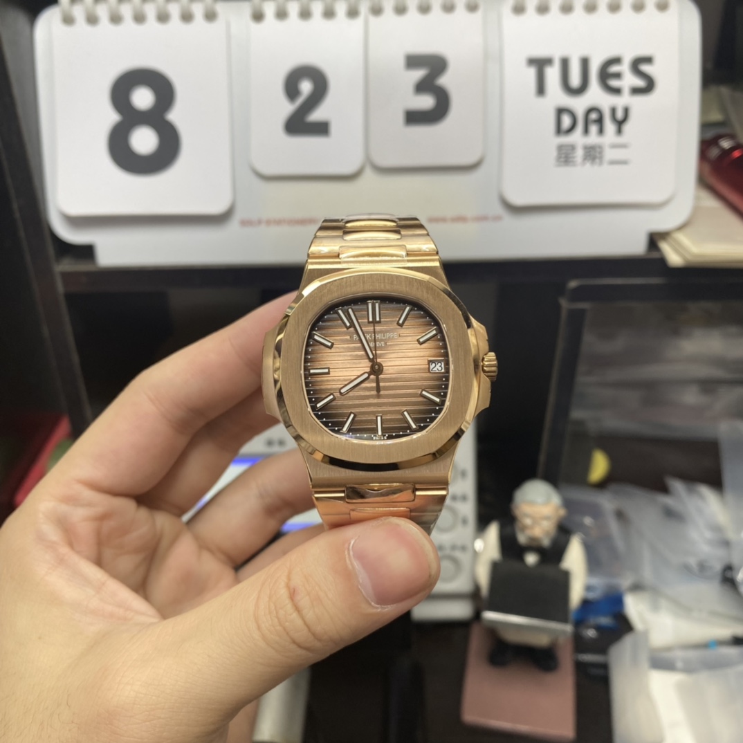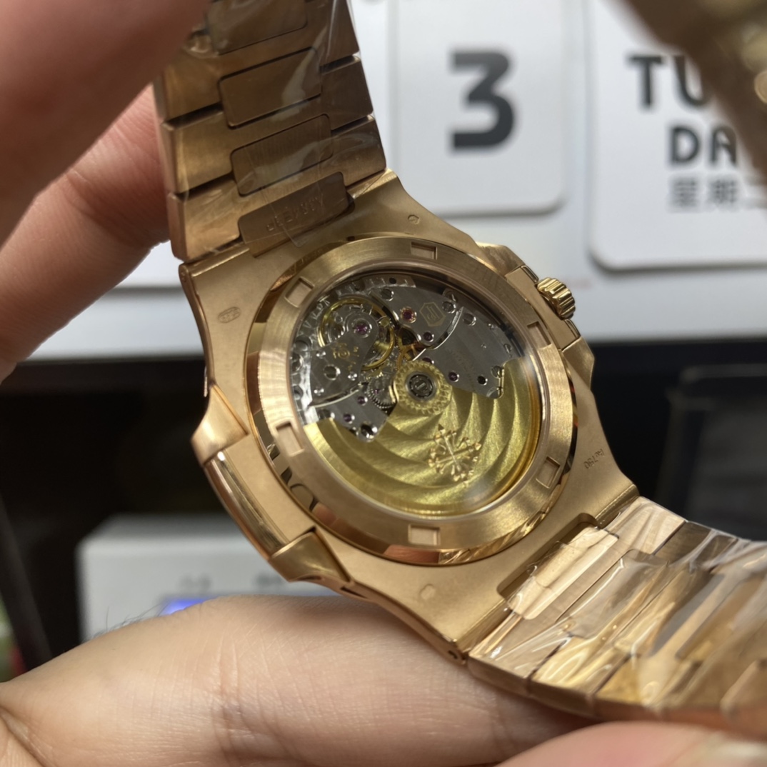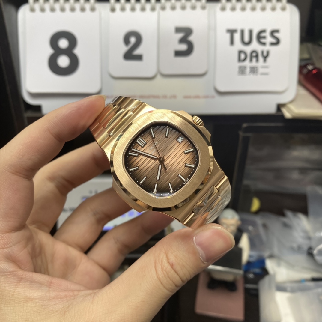Patek Philippe Nautilus series 57111R-001, Rose Gold Case with Gradient Dark Brown Dial Steel Bracelet, 40mm Size.