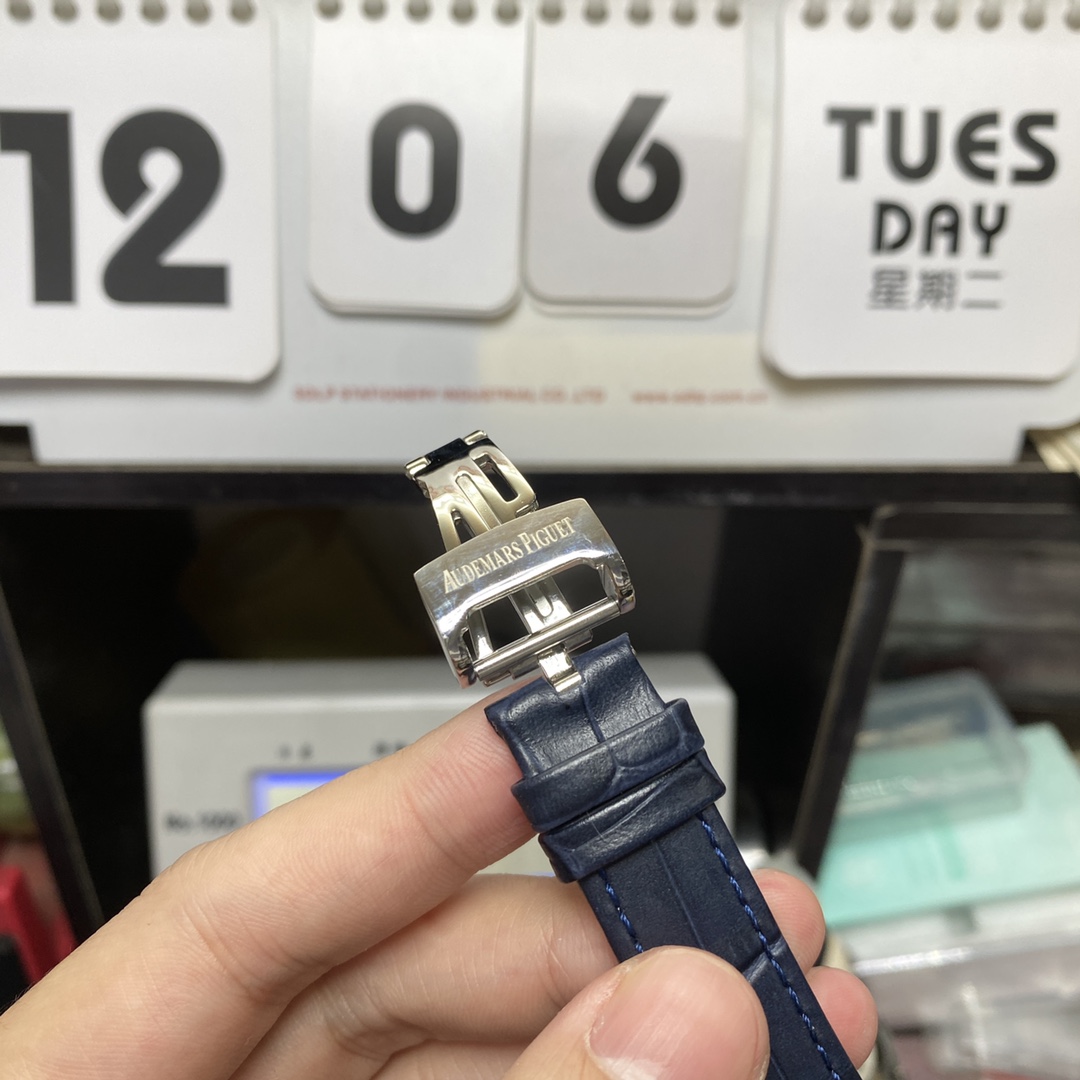·Dial Material: Blue dial with "Grande Tapisserie" large checkered pattern, white gold luminescent hour markers, and Royal Oak hands