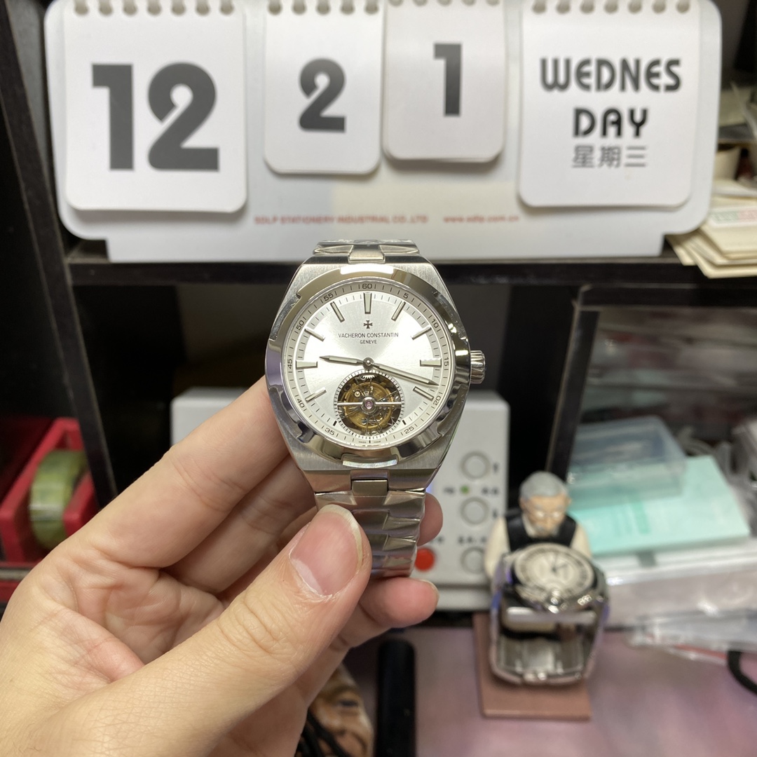 Vacheron Constantin Overseas series,Ring automatic tourbillon, WHITE Dial with STEEL Bracelet, 41.5mm Size.
