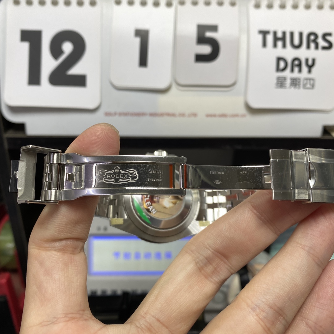 ·Bracelet Material: Oystersteel, commemorative, solid five-piece links; polished center links, satin-finished outer links, polished edges